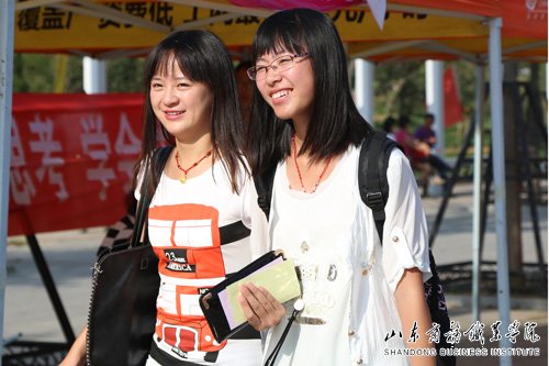 姐姐顾明霞考了472分,妹妹顾明燕考了428分,今年双双被我院录取。顾明霞说:“我们两个都喜欢大海,能够同时被山东商务职业学院录取,我们非常兴奋。”而两姐妹的父亲也对她们的选择表示满意。“两个人在一个学校,彼此有个照应挺好。”来送行的父亲脸上显得格外轻松。