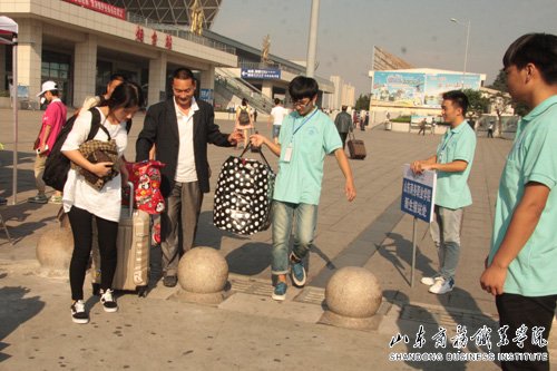 据了解,今年我院在烟台火车站、烟台长途汽车站及烟台北马路汽车站均设有接站组,志愿者们用亲切的问候和耐心的指引,向风尘仆仆的新生和家长传递着“大商务”的热情:从早上6点到晚上9点,百余名师生志愿者负责引导、答疑,20多辆豪华巴士,400多次义务往返,身着蓝色T恤、高举迎新接站牌的志愿者们,成为车站一道亮丽风景。