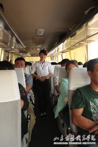 “各位学弟学妹、家长朋友们,欢迎你们来到美丽的烟台……”从烟台火车站沿滨海路行至我院的迎新大巴车上,来自商务外语系旅游管理13级的王晓晨同学耐心地为学生及家长们讲解,不少第一次来到烟台的学生及家长伴随着她声情并茂地讲解,领略了烟台的美景与文化。“原本疲惫忐忑的心情,跟着她耐心的讲解,放松了不少。”会计系2014级新生卢文秀表示。